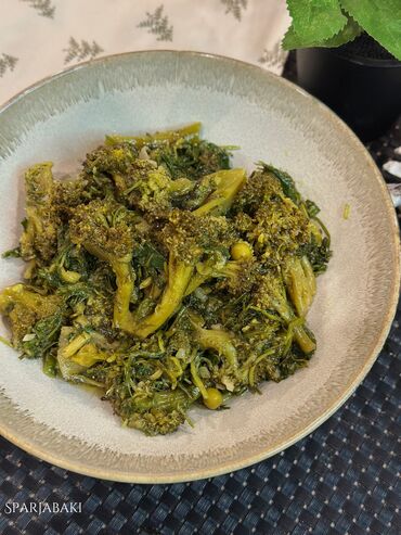 - Brokkoli-göyərti qarışığı: brokkoli çiçəkləri, keşniş/şüyüd notları, sarımsaq və ədviyyatla bişmiş, şirəli və aromatik.