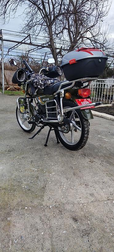 Moped/Motosiklet – MX49 Sport Racing üslubunda Xüsusiyyətlər: - Kuzov: tam qaplamalı sport dizayn, zeytun-yaşıl rəng, “MX49” yazıları - Ön şüşə: tünd mavi spoiler tipli vindschild - İşıqlandırma: ...