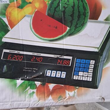 - Elektron tərəzi: 40 kq-a qədər ölçmə qabiliyyəti, 5 q dəqiqlik, LED displeylər (çəki, vahid qiymət, ümumi məbləğ), TARE və ZERO funksiyaları, 8 yaddaş düyməsi, sayısal klaviatura. Mağaza və bazar istifadəsi üçün əlverişlidir.