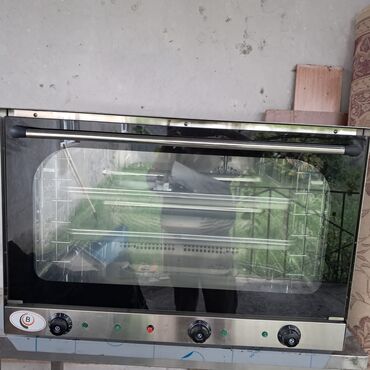- Konveksiya tipli elektrik peçi: ön şüşə qapı, paslanmayan korpus, üç müstəqil idarəetmə düyməsi (temperatur, vaxt, işə düşmə), daxili rəflər üçün istiqamətləndiricilər, işıq göstəriciləri. Böyük vitrin şüşəsi sayəsində bişirmə prosesini rahat izləmək olur.