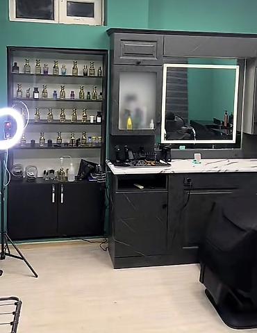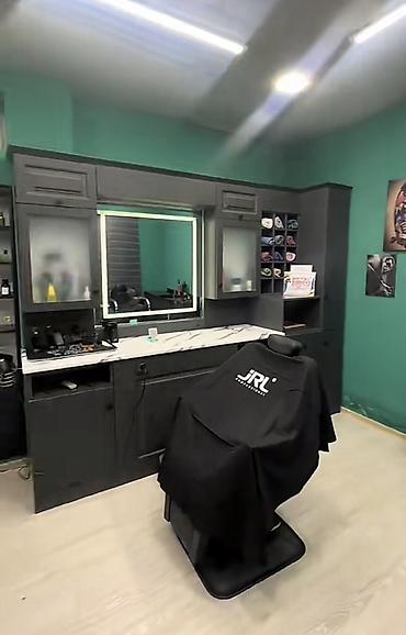 - Barber üçün tam təchizatlı iş yeri: LED arxa işıqlı böyük güzgü, mərmər üslublu (membran) masaüstü, alətlər üçün bölmələr