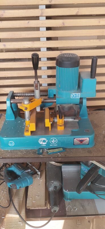 - Künc kəsmə və profil doğrama dəzgahı: sabit baza, sürüşmə stol, qoruyucu örtük və güclü elektrik mühərriki. Profil və aksesuarların dəqiq 45/90° kəsilməsi üçün nəzərdə tutulub. Geniş dayaqlar və tənzimlənən bələdçilər var.