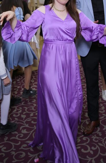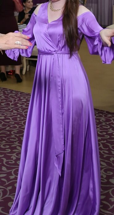 Bənövşəyi rəngdə uzun ziyafət geyimi.