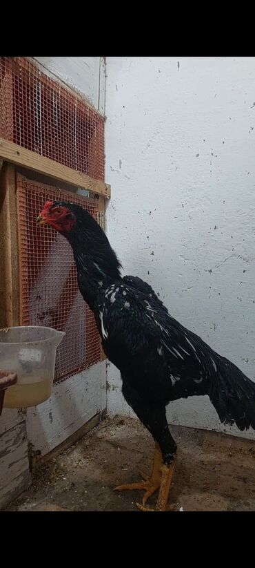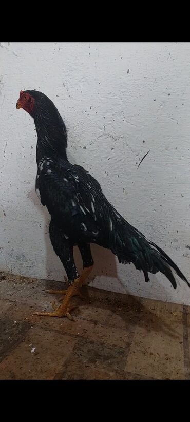 Salam alekum heyratı xoroz satılır ünvan Bərdə Çatırılma yoxdur Təsvir: - Güclü quruluşlu, uzun bədənli və dik duruşlu xoruz - Parlaq rəng palitrası: ağ əsasda qara və qəhvəyi-şabalıdı naxışlar, qu...