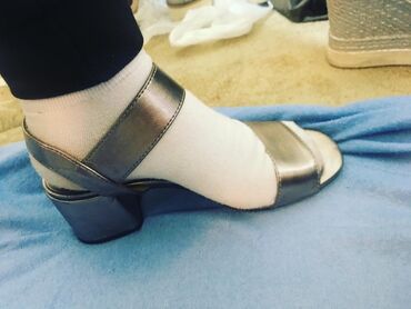 Чистая кожа(турция), каблук очень удобный 6.5 см, Размер 39-40. Покупали за 140 манат, одевали один раз на свадьбу.