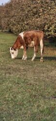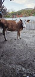 Məhsul: Dana (Simental tipli, al-qəhvəyi və ağ rəngli) Xüsusiyyətlər: - Cinsə yaxın görünüş: Simental tipli, ağ alnı və ağız-burun hissəsi, qırmızı-qəhvəyi bədən, ağ ləkələr - Yaş qrupu: cavan dan...