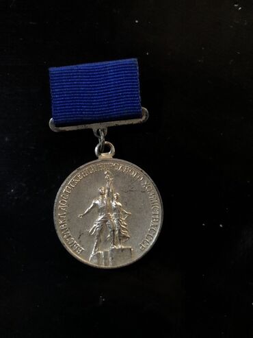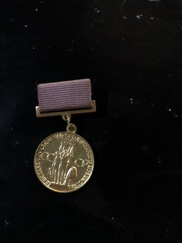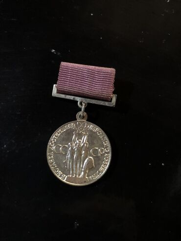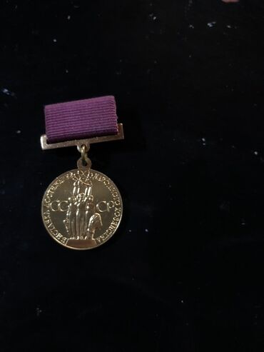 - SSRİ tematik medalı: Bənövşəyi lentli asqı, ön üzdə “СССР” yazıları fonunda ayaqda dayanan fiqurlar kompozisiyası, kənar halqada kiril yazılı həkk. Metal tonlu, dairəvi medal.