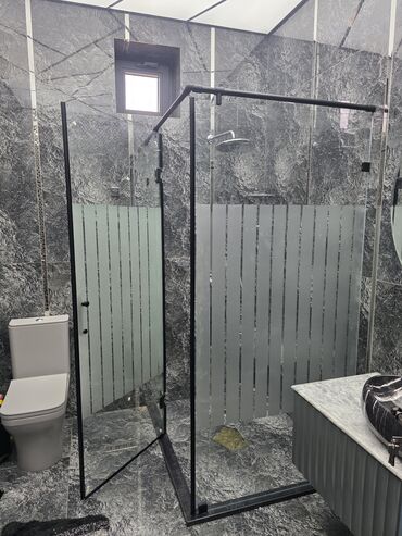 - Şüşə: temperli şəffaf şüşə, aşağı hissədə mat ştrix naxışlı zolaqlar (məxfilik üçün)
