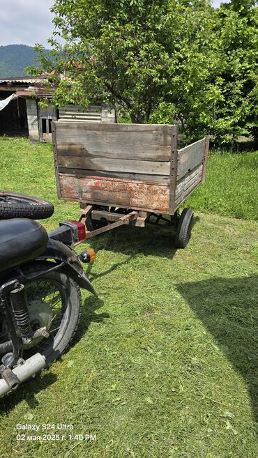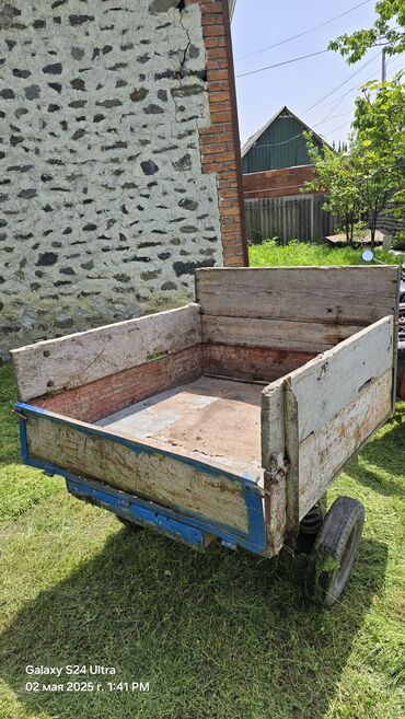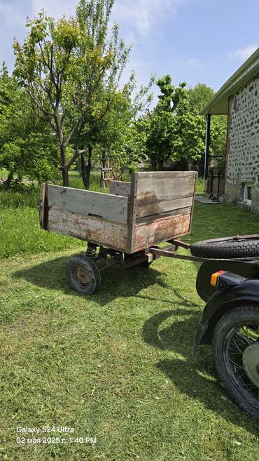 - Ümumi təsvir: Kiçik traktor, motosiklet və ya digər dartıcıya qoşmaq üçün nəzərdə tutulmuş iki təkərli qoşqu. Korpus ağac panellərdən yığılmış, metal şassi və çərçivə ilə möhkəmləndirilib.