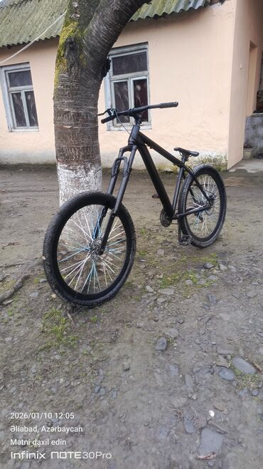 - Təkərlər: 26" ölçüdə, möhkəm halqalar; ön halqada dekorativ açıq mavi/sarı şpirlər