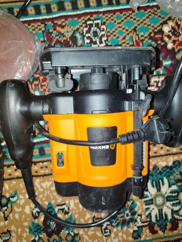 - Elektrik frez aparatı (üstündən dərinlik tənzimləmə şkalası və yan tutacaqlar görünür). 220V şəbəkə ilə işləyir, bazası və paralel dayaq/qalınlıq tənzimləmə vintləri mövcuddur.