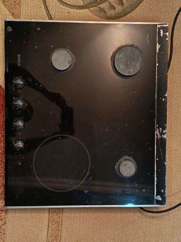 Qaz-elektrik kombinə plitə paneli - 60 sm enində, şüşə/emetal səthli panel - 4 ocaq bölməsi: 3 qaz gözüyü (kiçik, orta, güclü “wok” tipli) + 1 elektrikli disklik - Dəmir (döküm tipli) bərk qəfəslə...