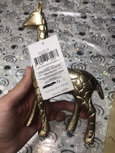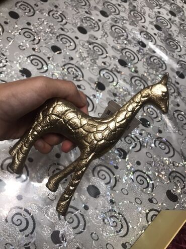 Metal zürafə fiquru - Material: tökmə metal (pirinç/bronza tipli görünüş) - Rəng: antik çalara malik metalik ton - Dizayn: uzadılmış siluet, əl işi tekstural oyma və naxışlarla; bədənin üzərində k...Giriş•Qeydiyyat
