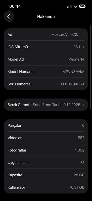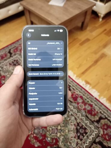 - Model: iPhone 14 (ekrandakı “Haqqında” bölməsində göstərilir)