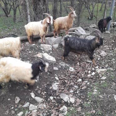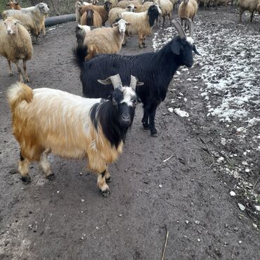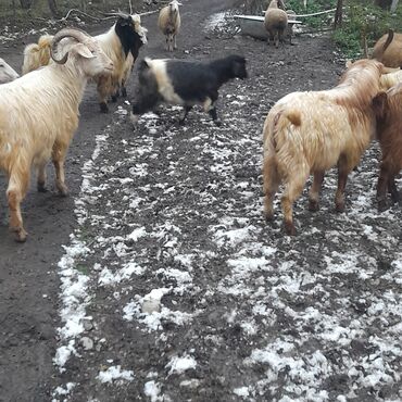 Satılır – yerli cins keçilər sürüsü 18 bicme 12 kuer 2 cepiw - Şəkillərdə müxtəlif rəngli və buynuzlu erkək və dişi keçilər görünür. - Uzun, qalın və parlaq yun örtüyü; açıq krem, sarı, qara və qa...