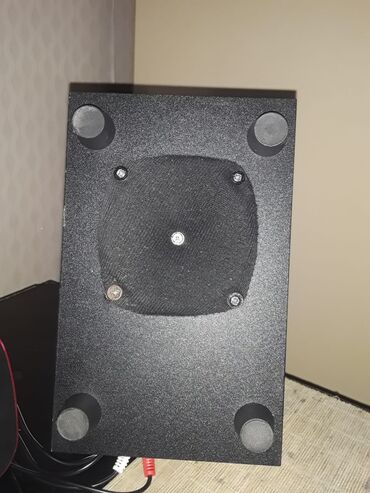 - Korpus: subwooferdə yan rezonans portu, alt hissədə vibrasiyanı azaldan rezin dayaq