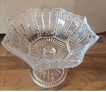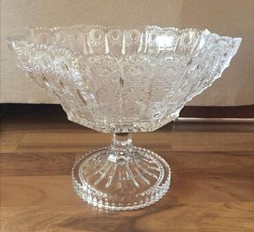 7.5Pod xrustal. Hündürlük 18 sm. Iri həcmli meyvə qabları. Vazalar. Cütü 50.