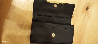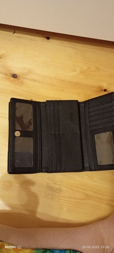 Qara rəngli kompak tərzdə cüzdan - Material: teksturalı süni/deri tipli material (toxumalı səth) - Rəng: klassik qara - Bağlanma: ön hissədə düyməli dilcək; kənarda metal fermanın başladığı hissə ...