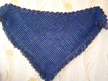 Mavi zərif şahlı şal – əl işi - Model: Üçbucaq formada, tor naxışlı -