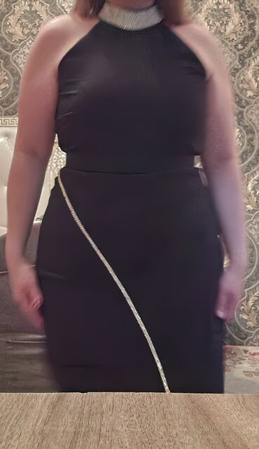 1 dəfə toya geyinilib 120 azne almışam 50 azn satlram real alıcıya endirim edərəm Qara axşam geyimi – zərli detallı
