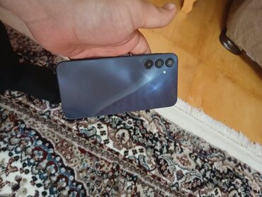 Samsung Galaxy A15 (görünüşdən təyin olunur) – qara rəngdə, incə korpuslu smartfon.