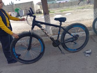 - Təkər ölçüsü: 29" (geniş protektorlu, mavi-aksentli disklər)