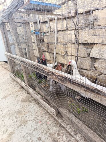 Qeyd: Şəkillərdə qəfəs/volyer də görünür; möhkəm tor və taxta karkaslı sahədə saxlanılır.