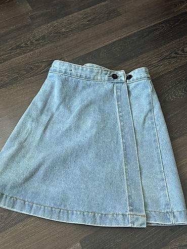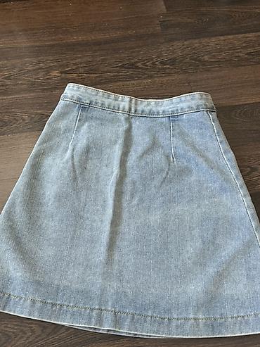 Açıq mavi cins ətək - Model: A-kəsimli, dizdən yuxarı uzunluq -