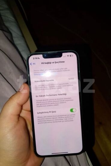 - iOS sistemində “Pil Sağlığı” bölməsi: Maksimum Kapasite 90%göstərilir; Yüksək Performans Yeterliliyi aktiv; İyileştirilmiş Pil Şarjı açıqdır.