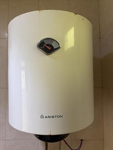 Qeyd: Şəkillərdəki model Ariston brendli elektrik su qızdırıcısıdır; temperatur miqyası və giriş-çıxış birləşmələri görünür. Tutum və güc dəyərləri üzərində qeyd olunmayıb.