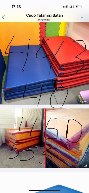 Tatami̇ və qanterləri̇n topdan və pərakəndə satişi ölçüsü :1x1 qalınlıq :2.7sm rənglər :2 üzlüdür göy-qirmizi və sarı -qara qiymətlər :17 azn və 20 ve 22 azn qanterlər : 4 azn fabri̇k malidir v...