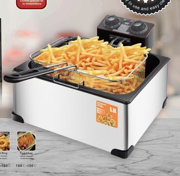 Mətbəx avadanlıqları və aksessuarları dəsti - RAF elektrik fritürü: tənzimlənən temperatur düyməsi, göstərici işıqları, metal səbət və tutacaqlı qapaq bölməsi. Kartof, toyuq, qəlyanaltılar üçün uy...