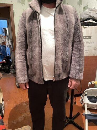 - Boz-bənövşəyi tonlarda xəz jaket: yumşaq toxuma, düz kəsim, yüksək yaxalı, ön hissədə iki tərəfli fermuar, yanlarda praktiki ciblər. Arxada uzununa dekorativ tikiş xətləri ilə minimalist görünüş. Soyuq havalarda isti saxlayan qalın material.