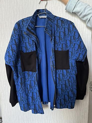 - Rəng və dizayn: Elektrik mavisi fon üzərində qara “D”/hərf naxışlı print, kontrast qara qol panelləri və döş cibləri.
