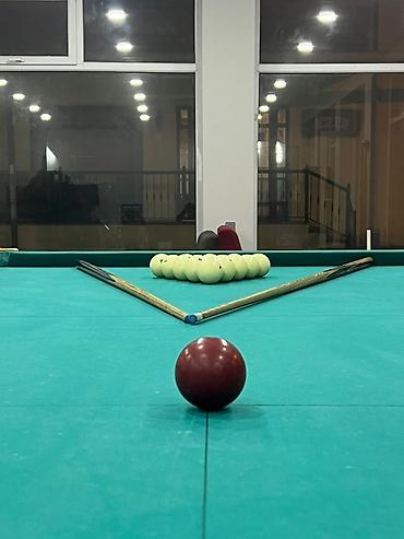 - Tam ölçülü klassik bilardo masası: taxta karkas, möhkəm ayaqlar, yaşıl örtük, tor ciblər.