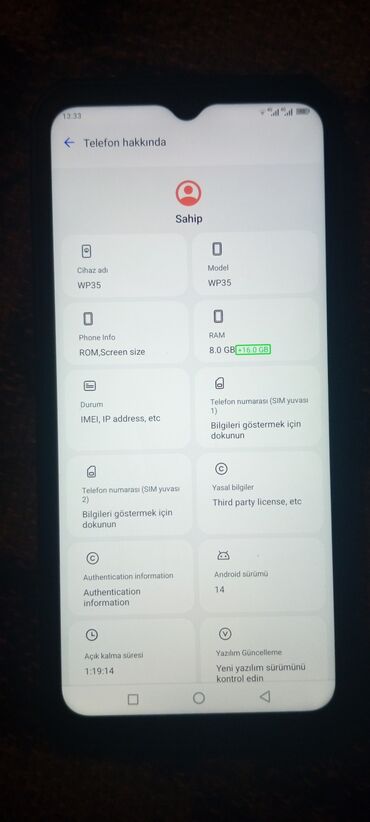 - Sistem: Android interfeysi, status çubuğunda Wi‑Fi/Şəbəkə, batareya göstəricisi və vaxt görünür.