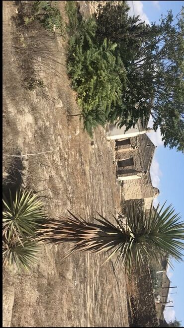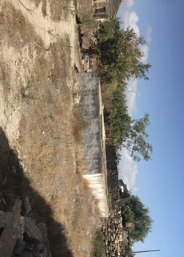 Satış üçün torpaq sahəsi və yarımçıq tikili - Geniş həyətyanı sahə: düz relyef, qurumuş örtük, 4 tərəfi hündür daş hasarla çevrələnib. - Sahədə köhnə/yarımçıq tikili var: birmərtəbəli plan, bir ne...