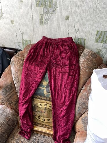 Qadın geyimləri paketi 1) Qırmızı məxməri idman dəsti: - Kapüşonlu, yarım-fermuarlı üst - Ön hissədə kristal daşlarla “V” və qanad naxışı - Uyğun eyni materialdan alt şalvar 2) Tünd qırmızı (şəra...